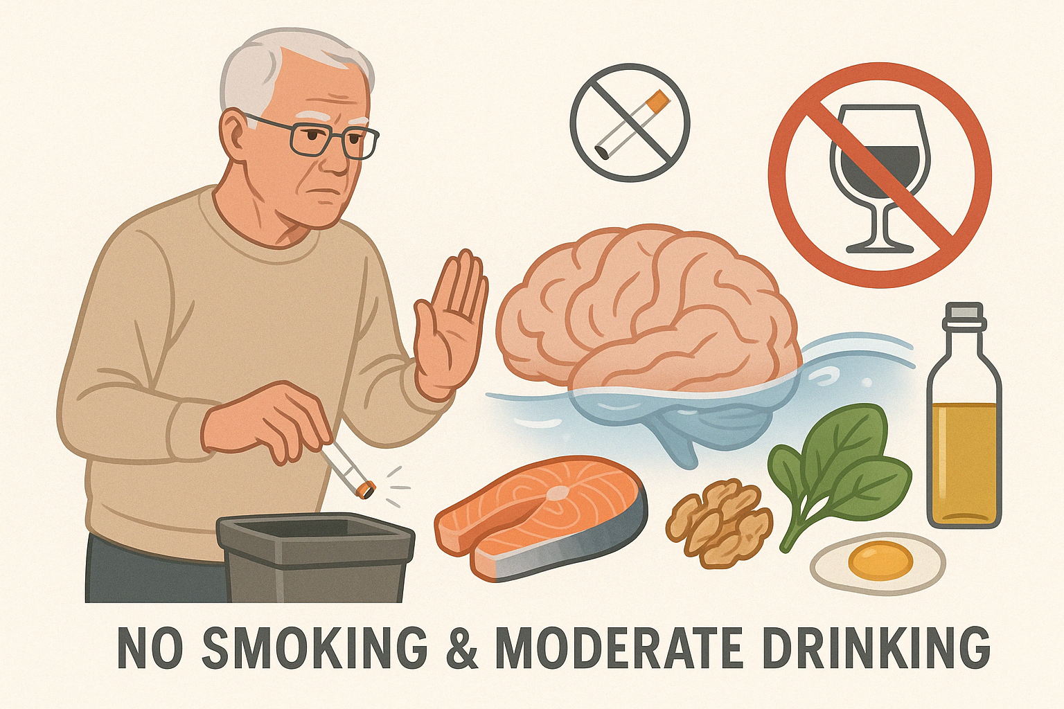 | ⑥ 금연 & 절주 | 뇌혈관 손상 예방, 뇌 위축 방지 |
